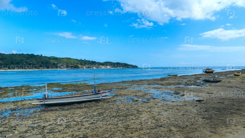 Рыбацкая лодка на побережье на острове Бали в Индонезии