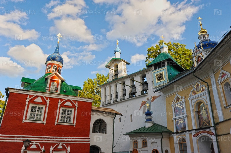 Звонница Псково-Печерского монастыря в городе Печоры, Псков, Россия