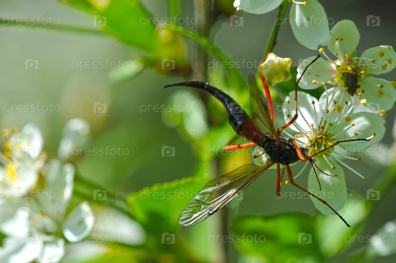Макромир: насекомое пьет нектар из цветка вишни