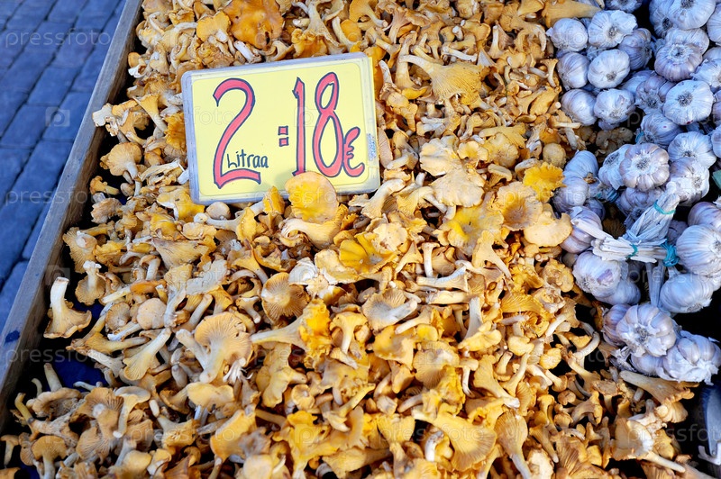 Сушеные грибы на рынке, Хельсинки, Финляндия