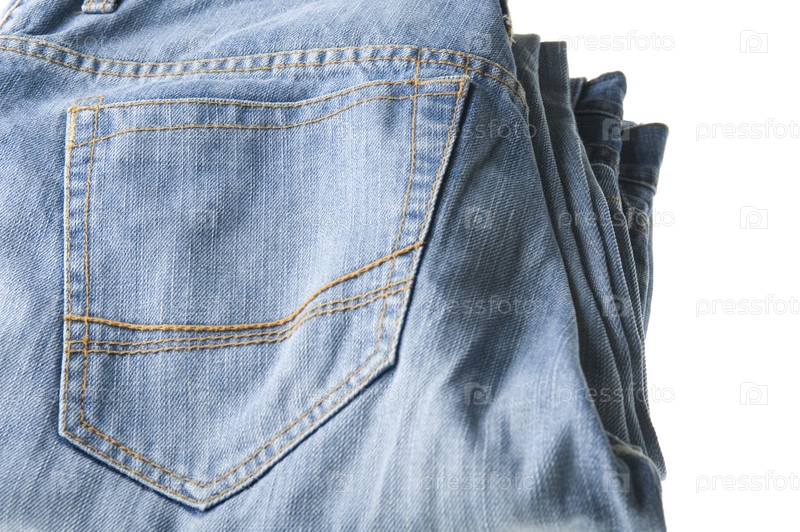 Объект на белой одежде Синие джинсы