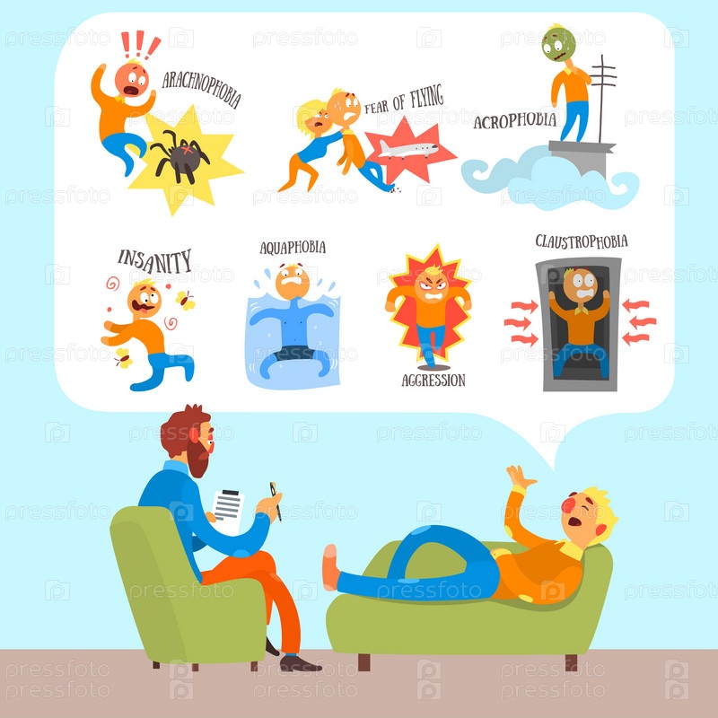 Врач-психотерапевт с больным обсуждают фобии