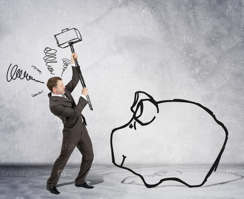 Бизнесмен с молотком и Копилкой