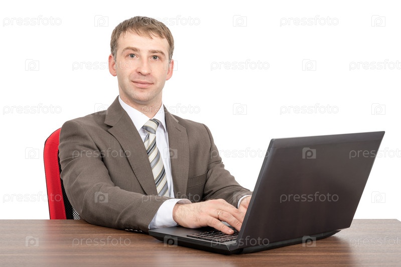 Бизнесмен, работа на ноутбуке