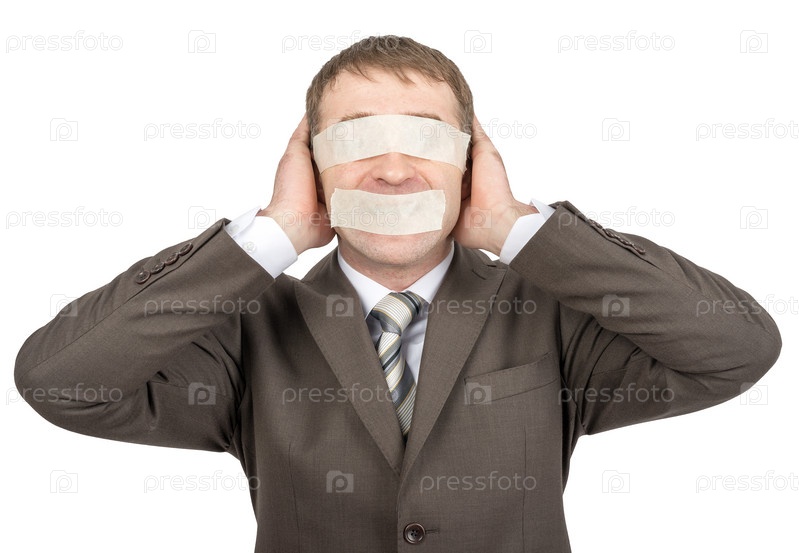 Бизнесмен с закрытыми ртом, глазами и ушами