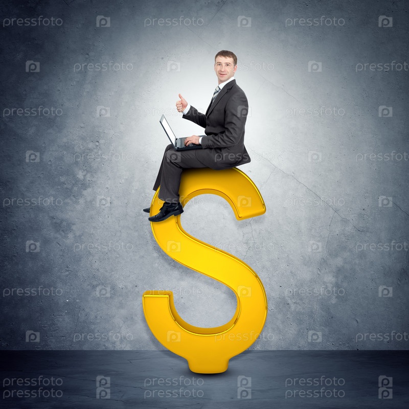 Бизнесмен сидит на долларе