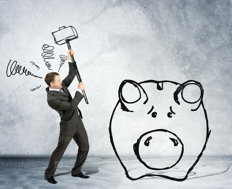 Бизнесмен с молотком и Копилкой