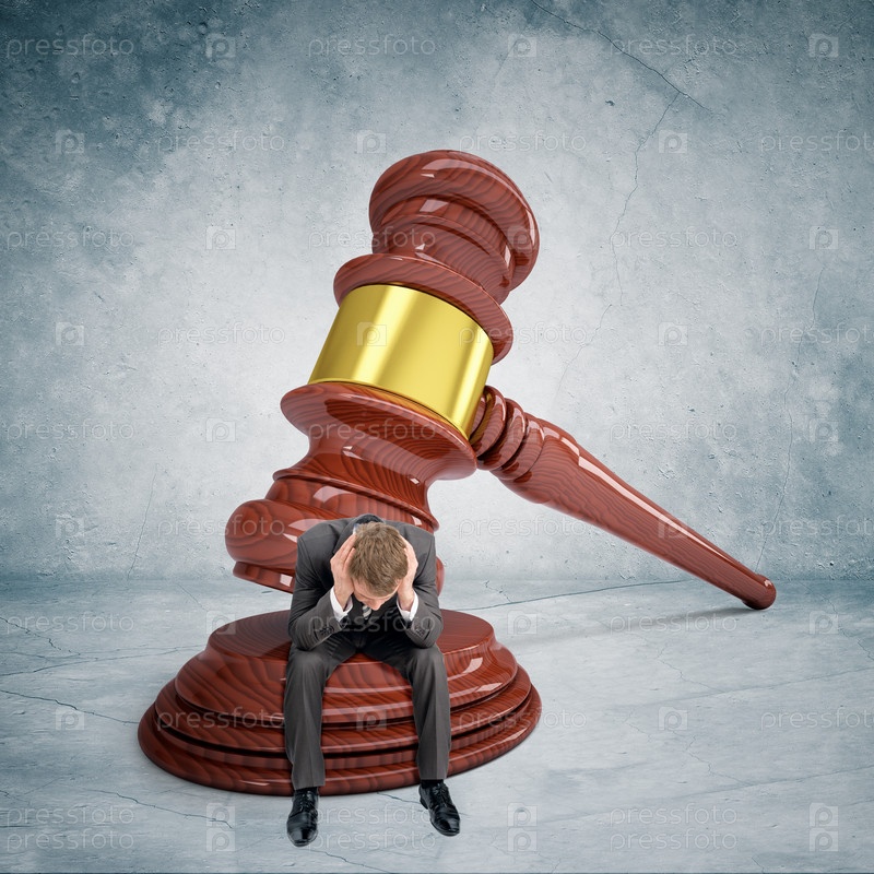 Грустный бизнесмен с судейским молотком