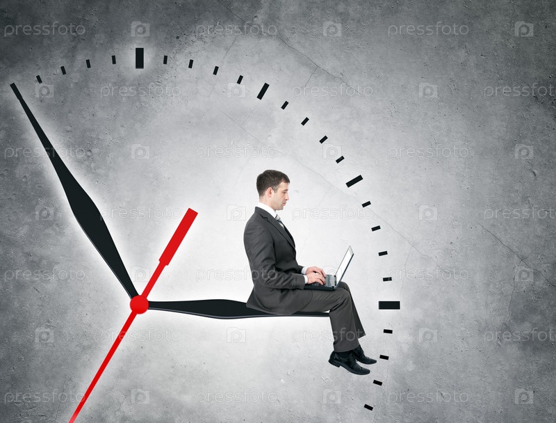 Бизнесмен, сидя на больших часах