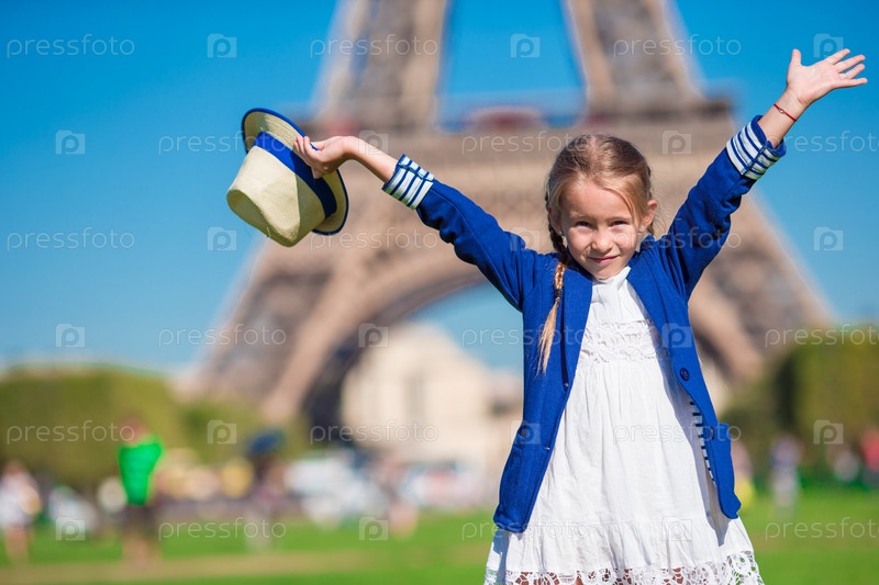 Очаровательная маленькая девочка возле Эйфелевой башни