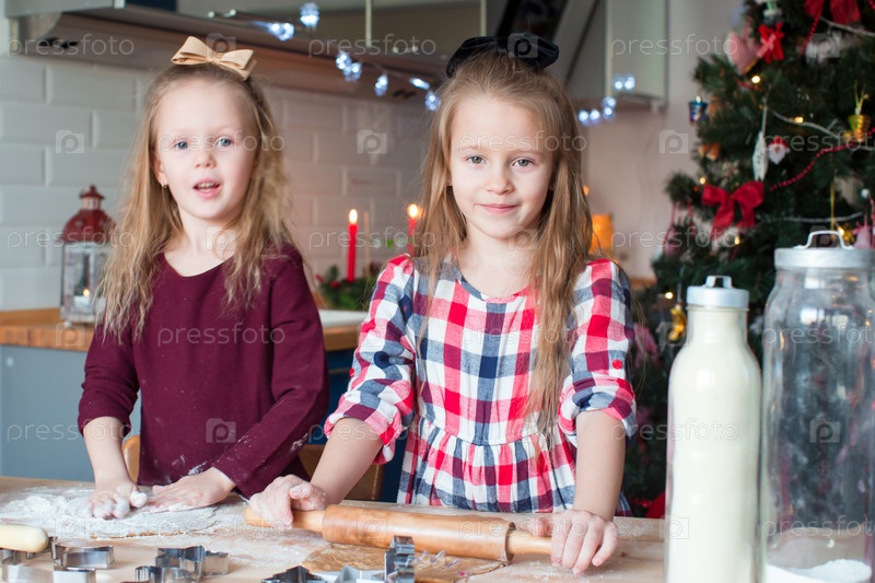 Две красивые девочки делают печенье