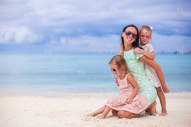 Мать с дочками на пляже
