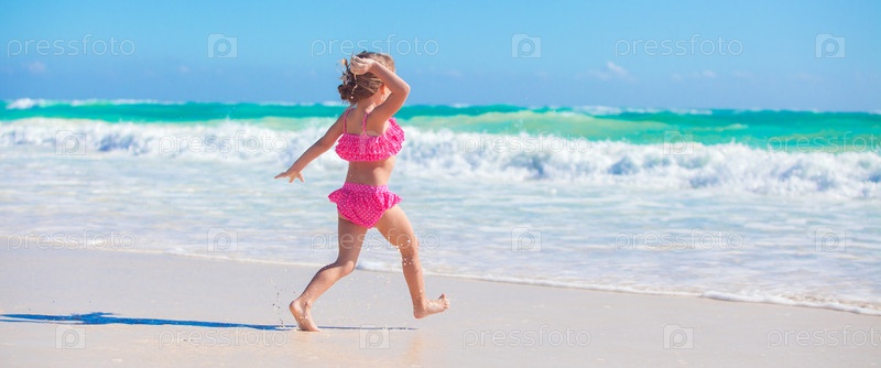 Маленькая девочка веселится на тропическом пляже