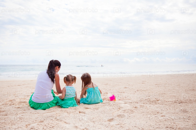 Мать с дочерьми на пляже