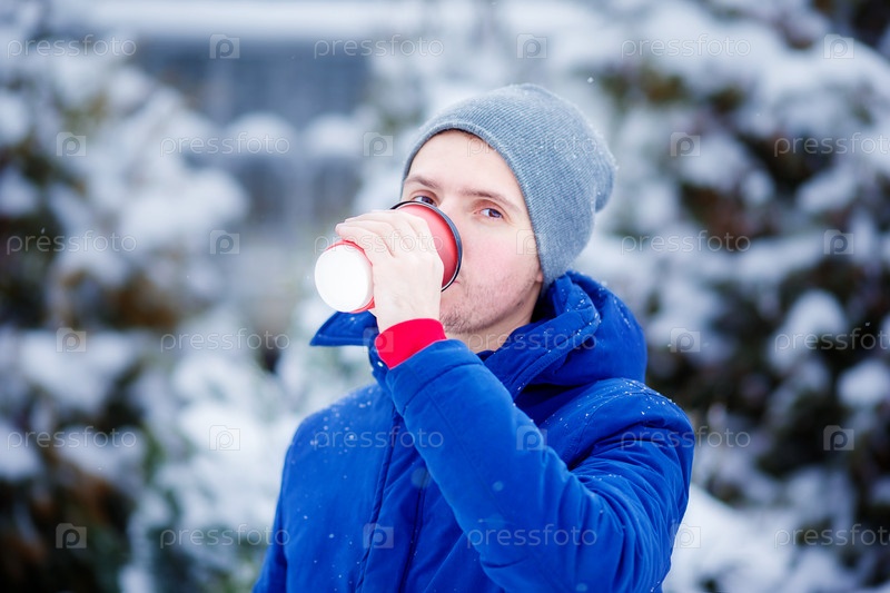 Молодой человек пьет кофе