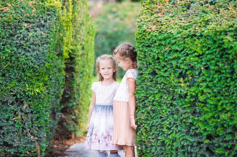 Очаровательные девочки в зеленом лабиринте