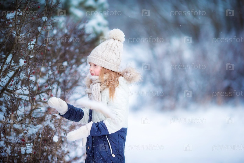 Очаровательны маленькая девочка в зимнем лесу