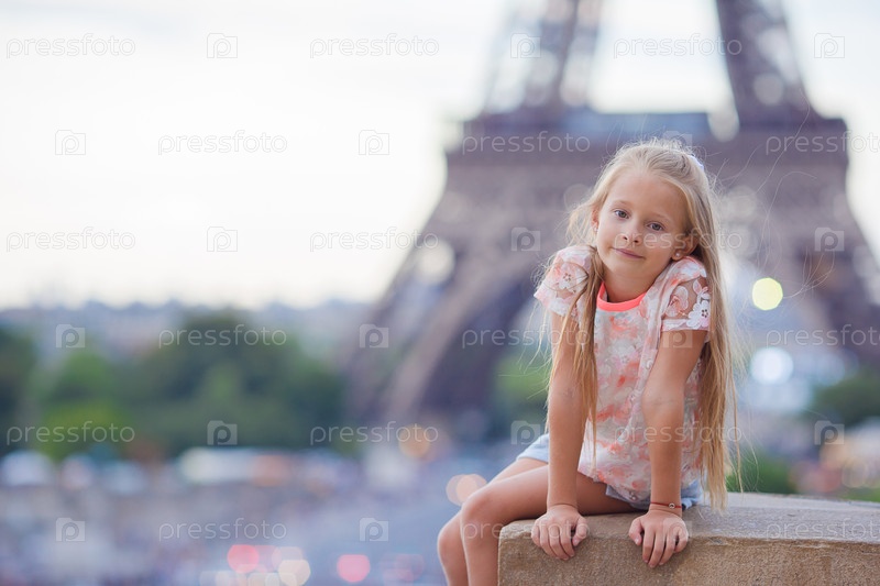 Очаровательная маленькая девочка на фоне Эйфелевой башни