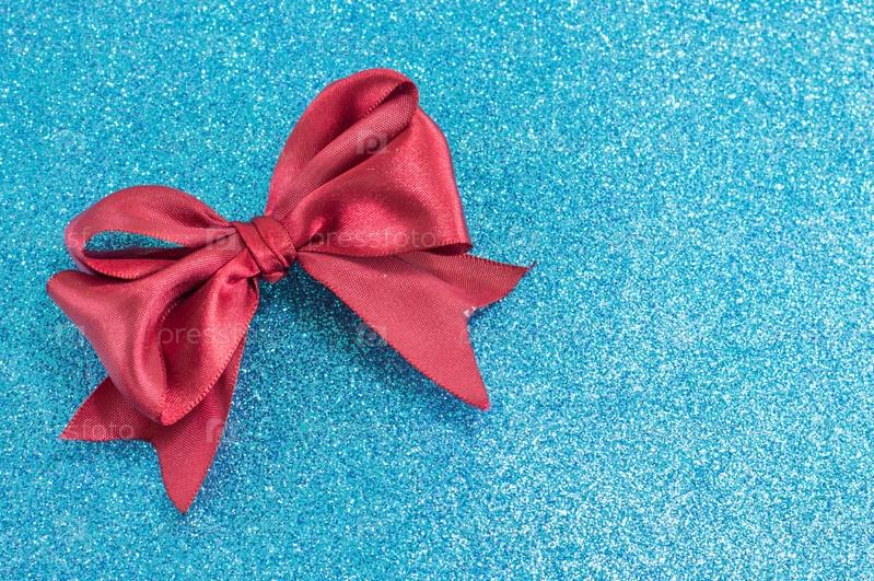 Красная лента с бантом на синем фоне