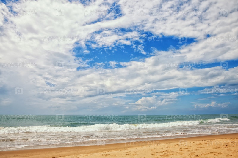 Песчаный пляж, океан и небо