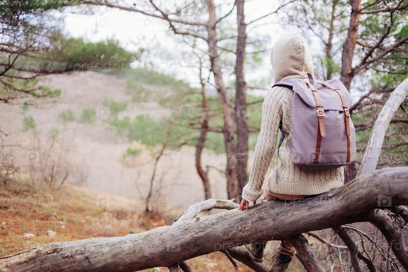 Сидя на стволе дерева