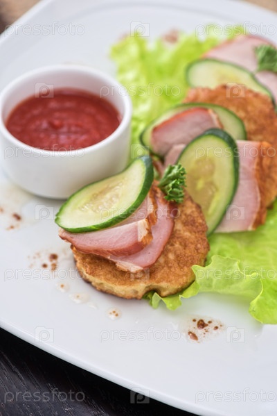 Блины с ветчиной и огурцом