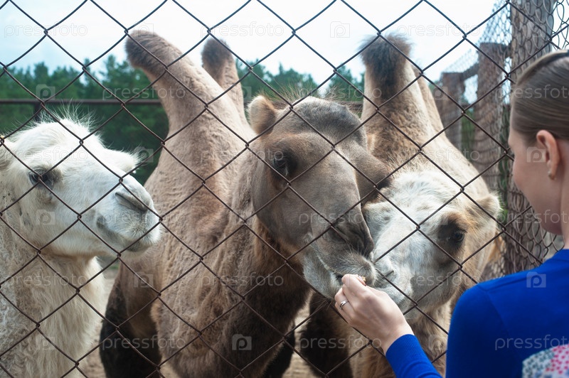 Женщина кормит верблюдов