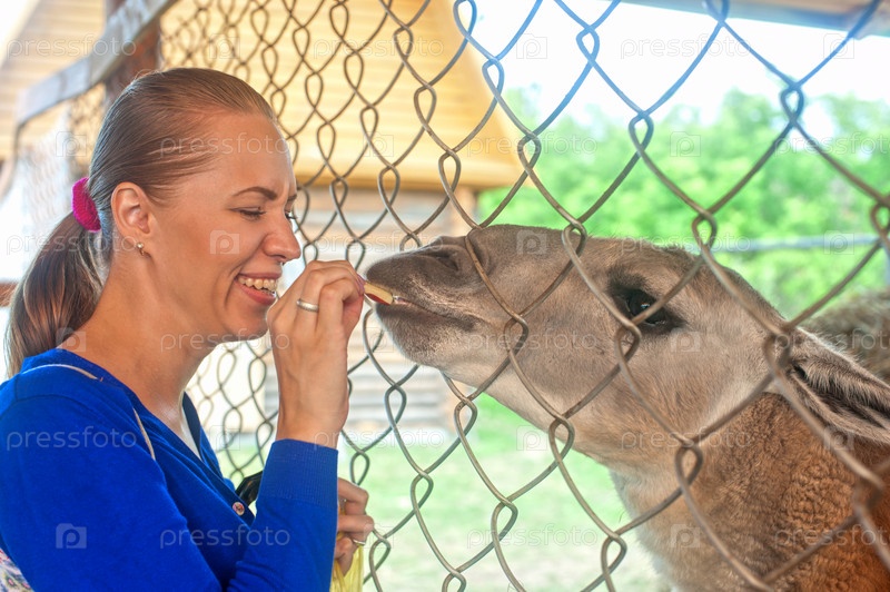 Женщина кормит ламу