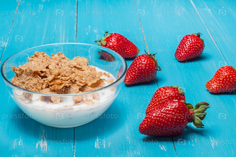 Свежая клубника и хлопья с молоком