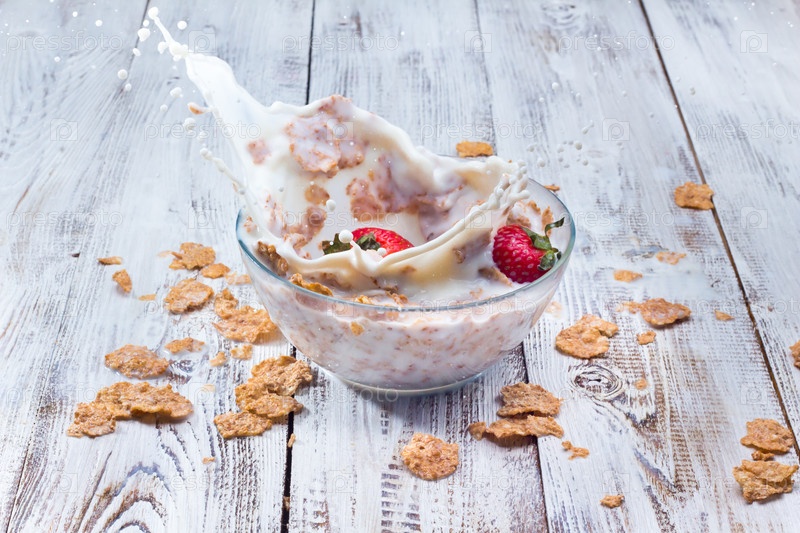 Хлопья с молоком и клубникой