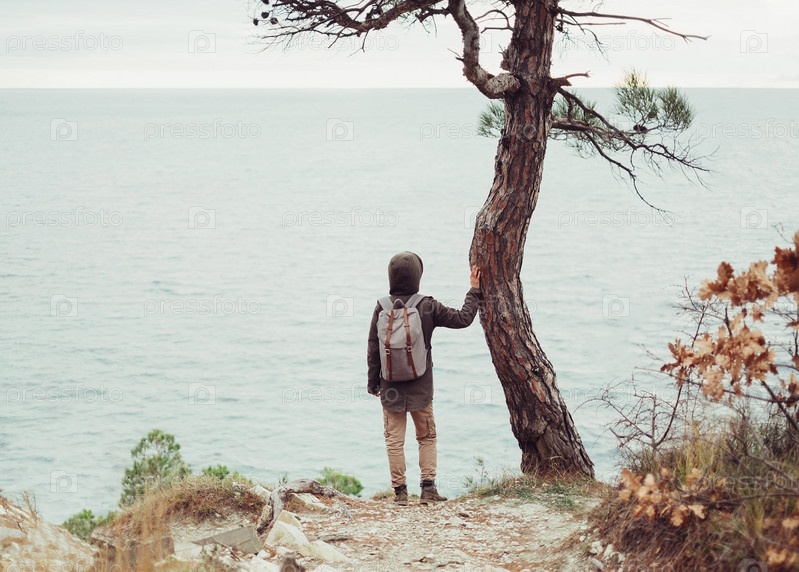Путешественник, отдыхая возле дерева
