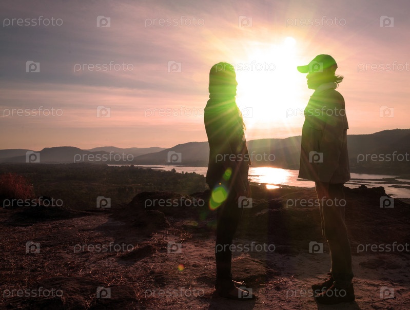 Силуэт пары на вершине холма