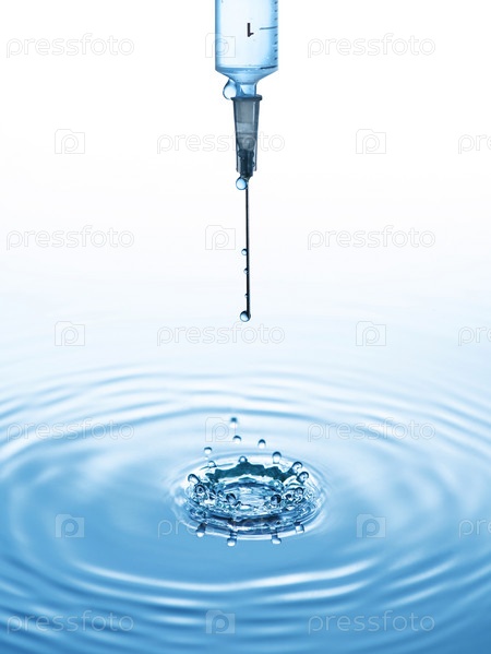 Игла шприца на фоне голубых вод