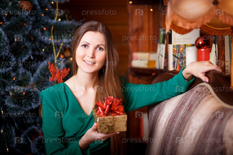 Красивая женщина с рождественским подарком