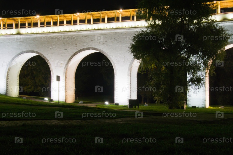 Акведук в парке ночью