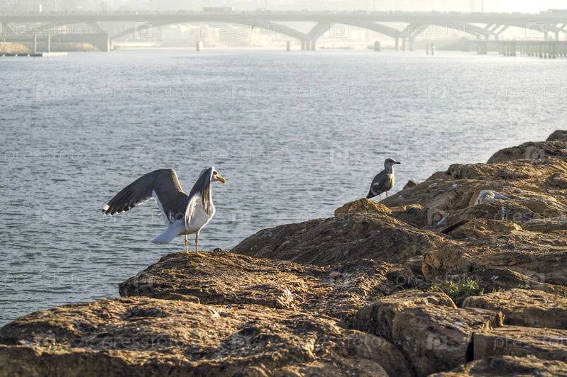 Чайки на камнях побережья