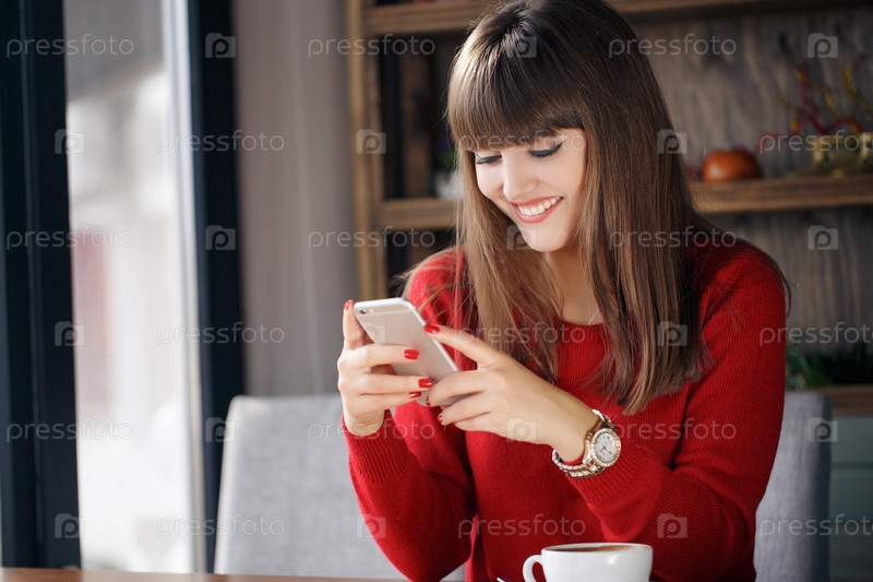 Красивая брюнетка со смартфоном
