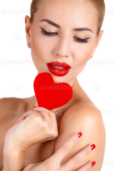 Женщина с красивым макияжем и сердечком