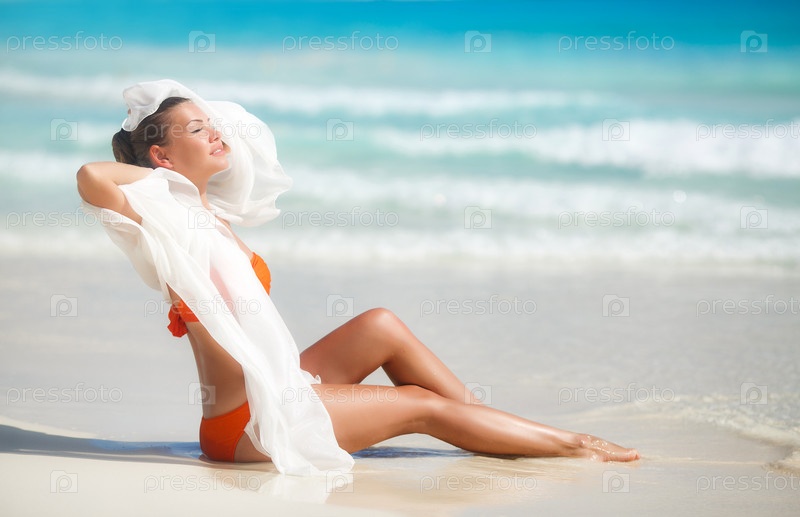 Молодая женщина в купальнике с белым парео