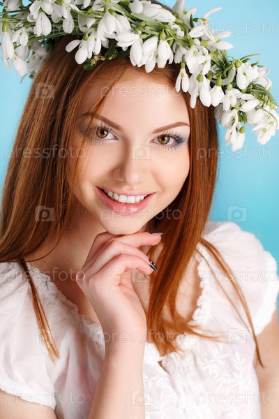 Красивая женщина с венком цветов