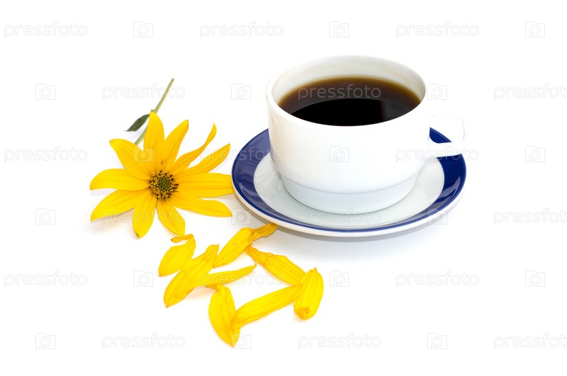 Чашка кофе и желтый цветок