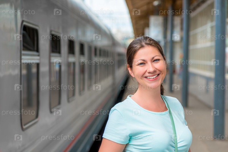 Портрет женщины на вокзале возле поезда