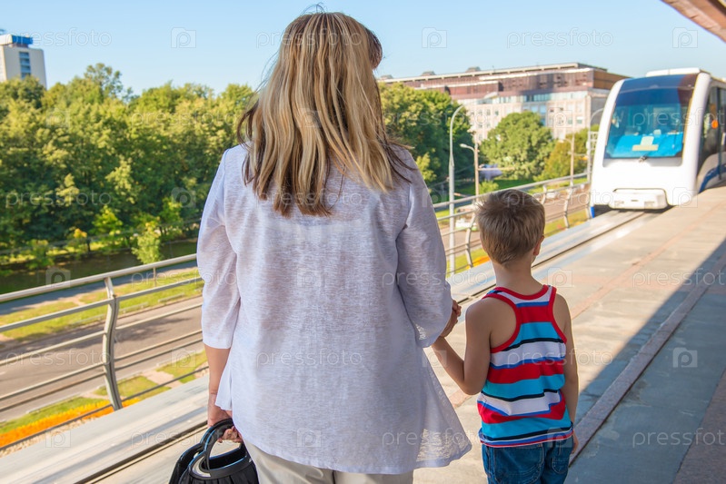 Женщина с ребенком на платформе ждет поезд