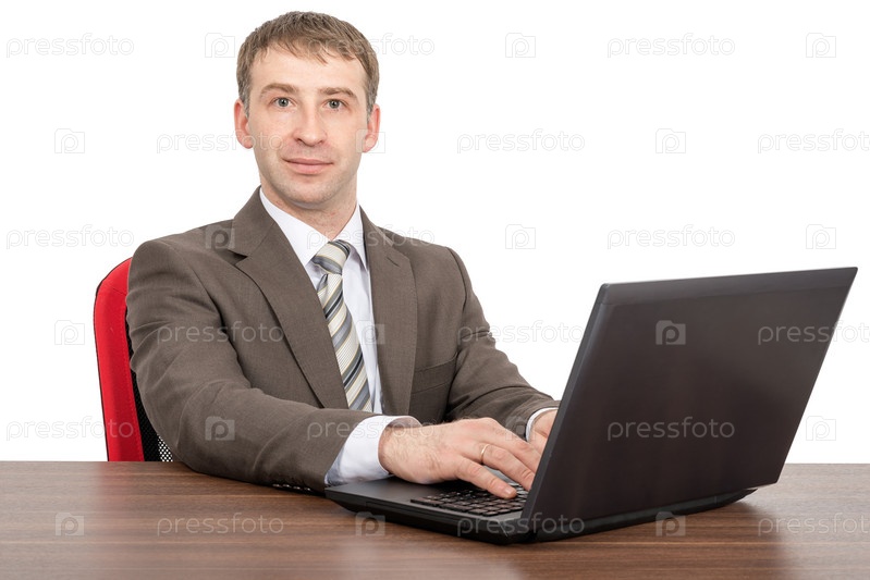 Бизнесмен работает за ноутбуком