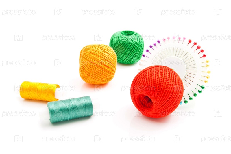 Цветные клубки ниток и булавки