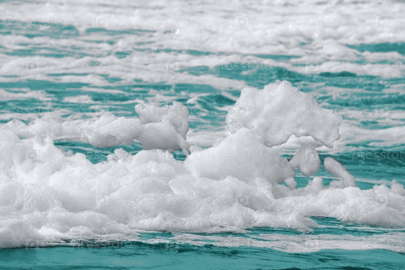 Белая пены на поверхности морской воды
