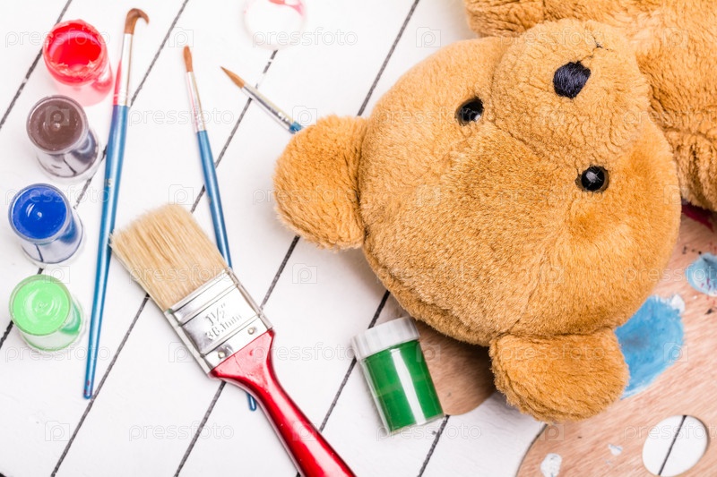 Плюшевый мишка и краски