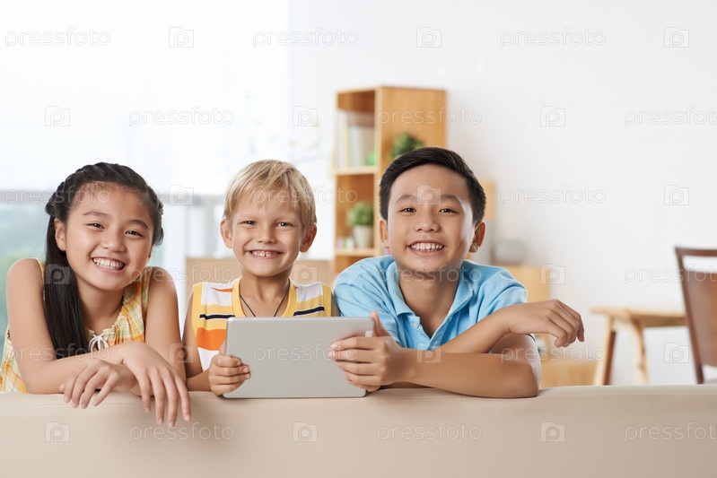 Счастливые дети с планшетом