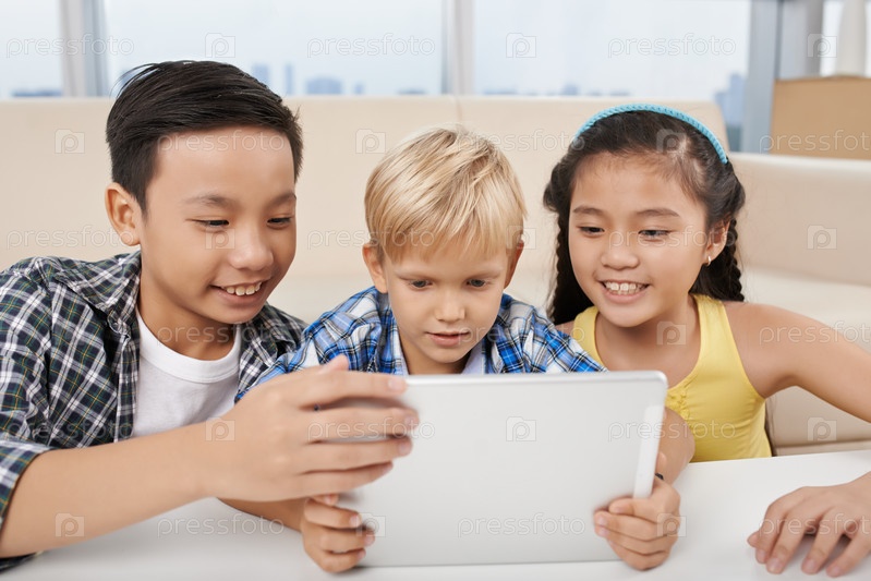 Счастливые дети с планшетом