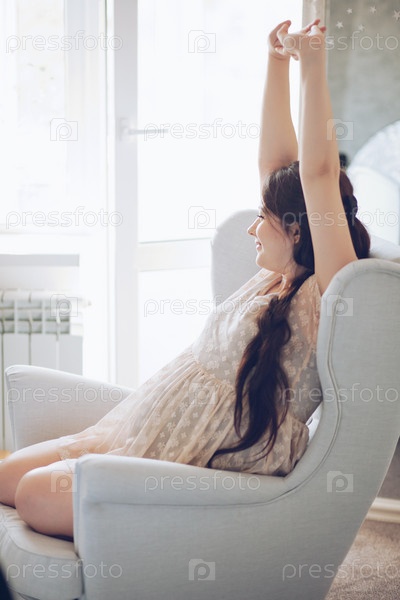 Беременная девушка потягивается